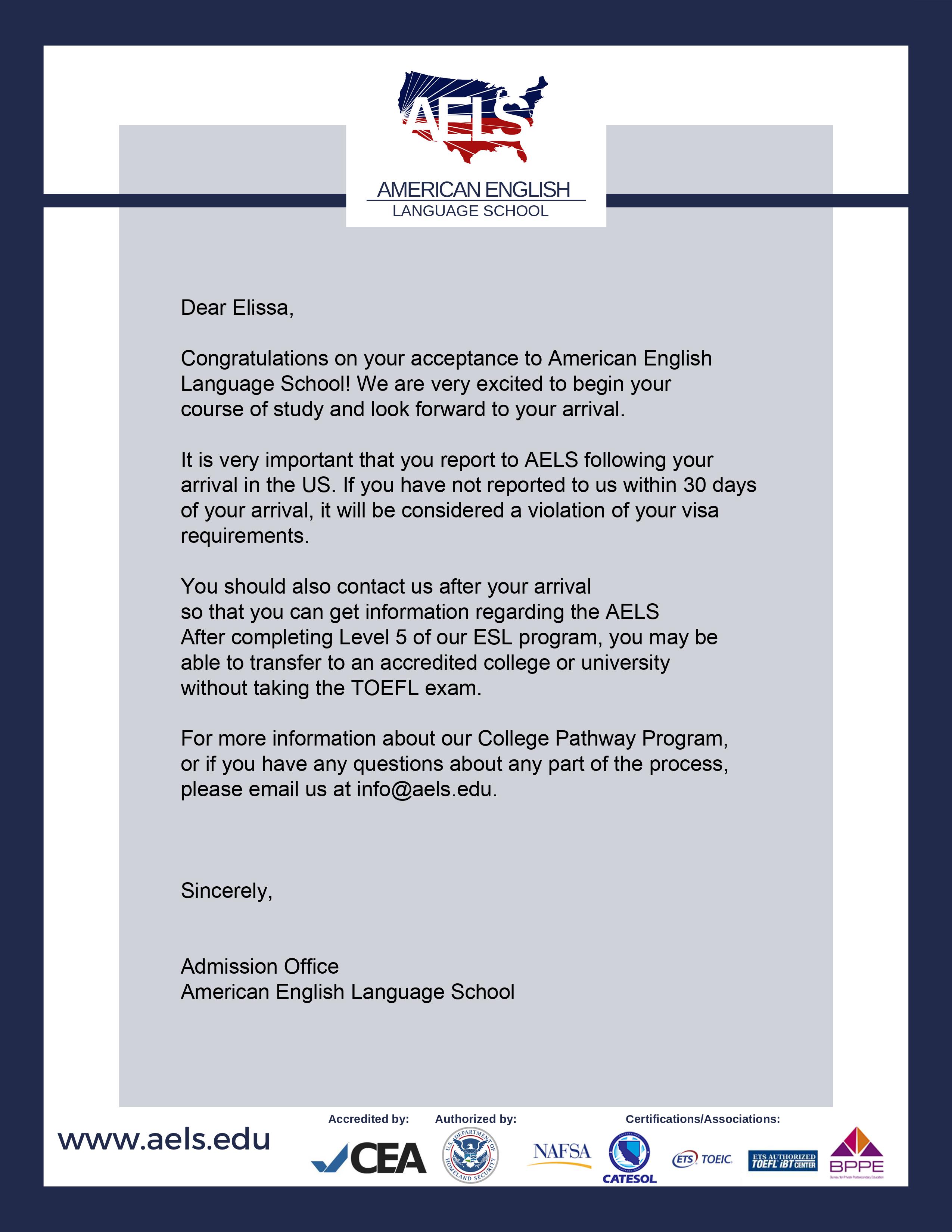 Kindly fill out your application form and submit the necessary documents to info@aels.edu. The required documents include:
